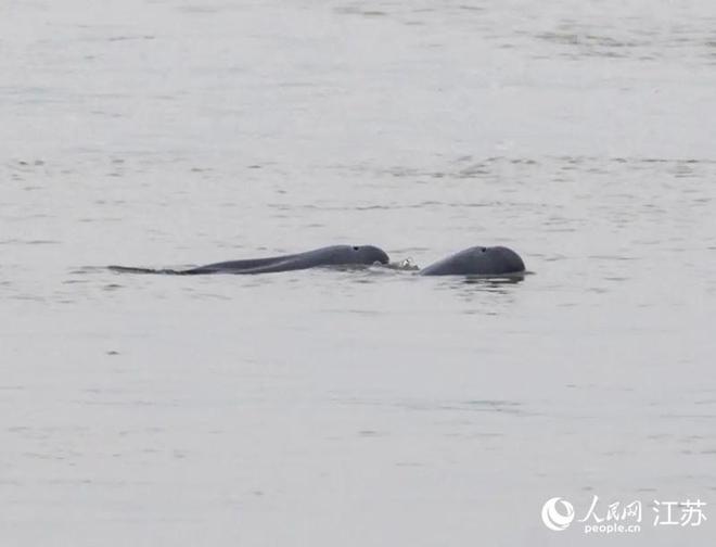在南京长江新济洲国家湿地公园拍到的江豚。人民网记者 王丹丹摄